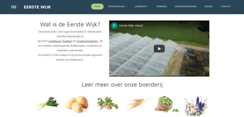 De Eerste Wijk in Veenhuizen is het oudste en grootste agrarische bedrijf van Nederland. Er worden prei en aardappels verbouwd maar ze staan vooral bekend om hun hop. Voor dit prachtige bedrijf was een website nodig met een authentieke look en er moest vooral groen, natuur en Drentse trots worden uitgestraald. Deze site heb ik samen met Julia Kuritsyna gemaakt.